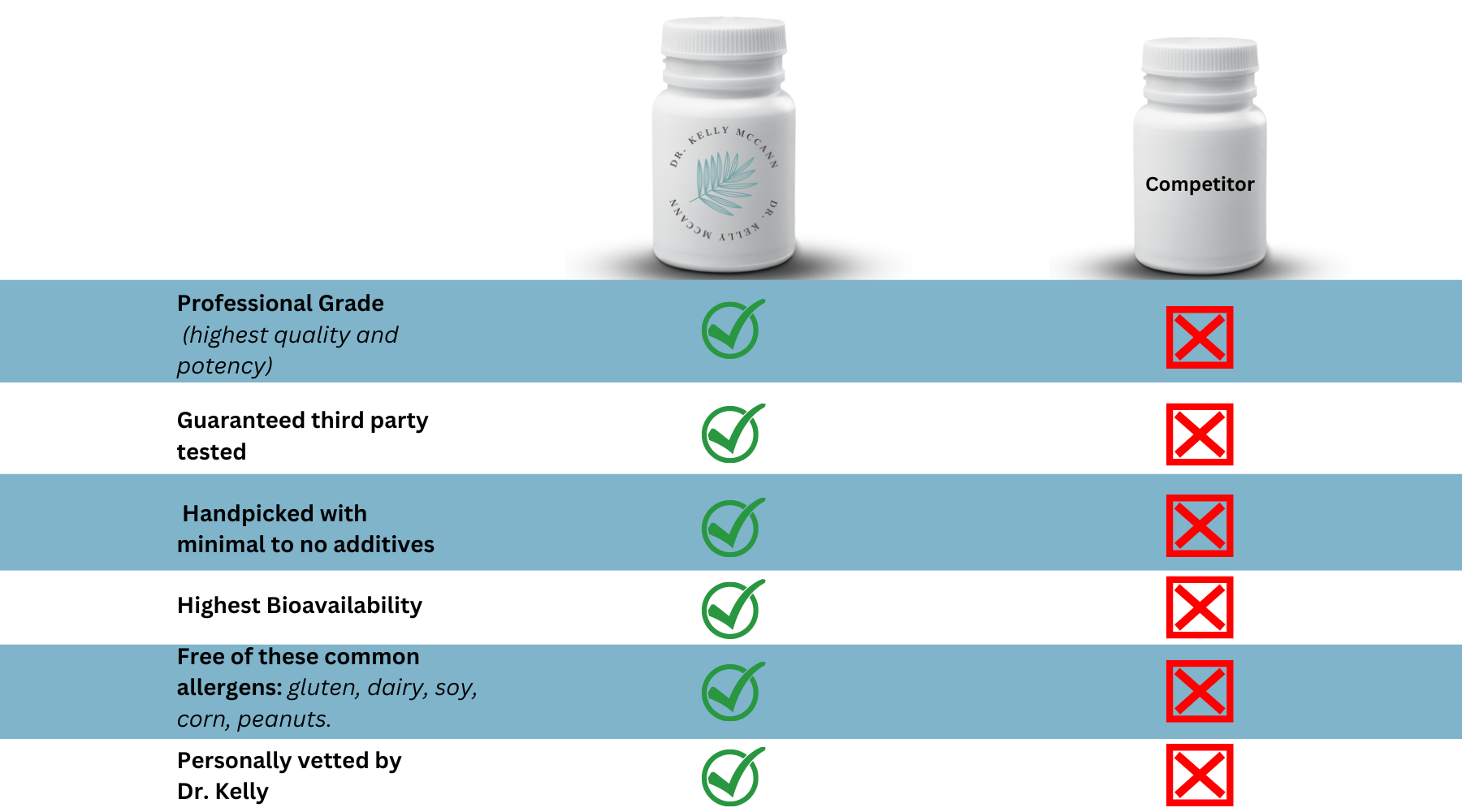 Professionally and personally tested by Dr. Kelly for the most effective science-based supplements